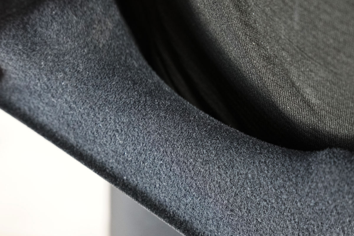 (臭いがつきにくく、薄く伸ばしてフィットさせるのではなく、⾮対称のスレッチで脚を包む)