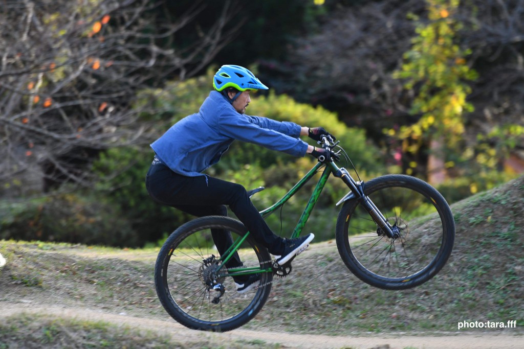 トレイルに行く時間がなくても近所でウイリーやバニーホップなどをして遊びながらスキルアップをして楽しめます。そういうスキルがトレイルライドやジャンプなどで活きてきます。