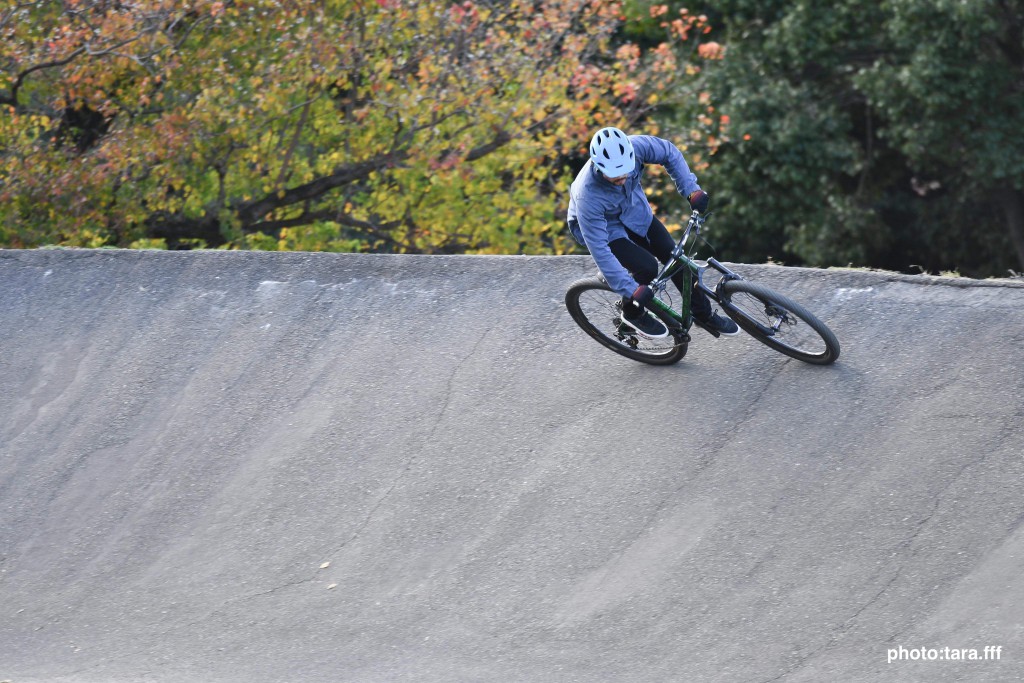 今回はBMXレーサーである自分がホームコースとして、35年ほどお世話になっている大泉緑地にあるサイクルどろんこ広場へ。ここは名前は可愛いですが、全日本選手権や国際レースが行われる歴史あるBMXレースコースです。もちろんBMXで走るのが最も気持ち良く速く走れるので安定感よりもクイックな操作性が求められる場所です。逆にBMXでダウンヒルは無理ですね(笑)