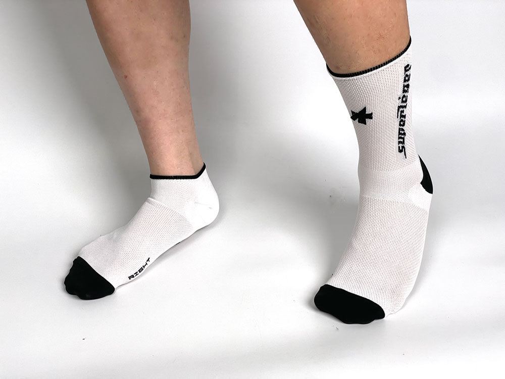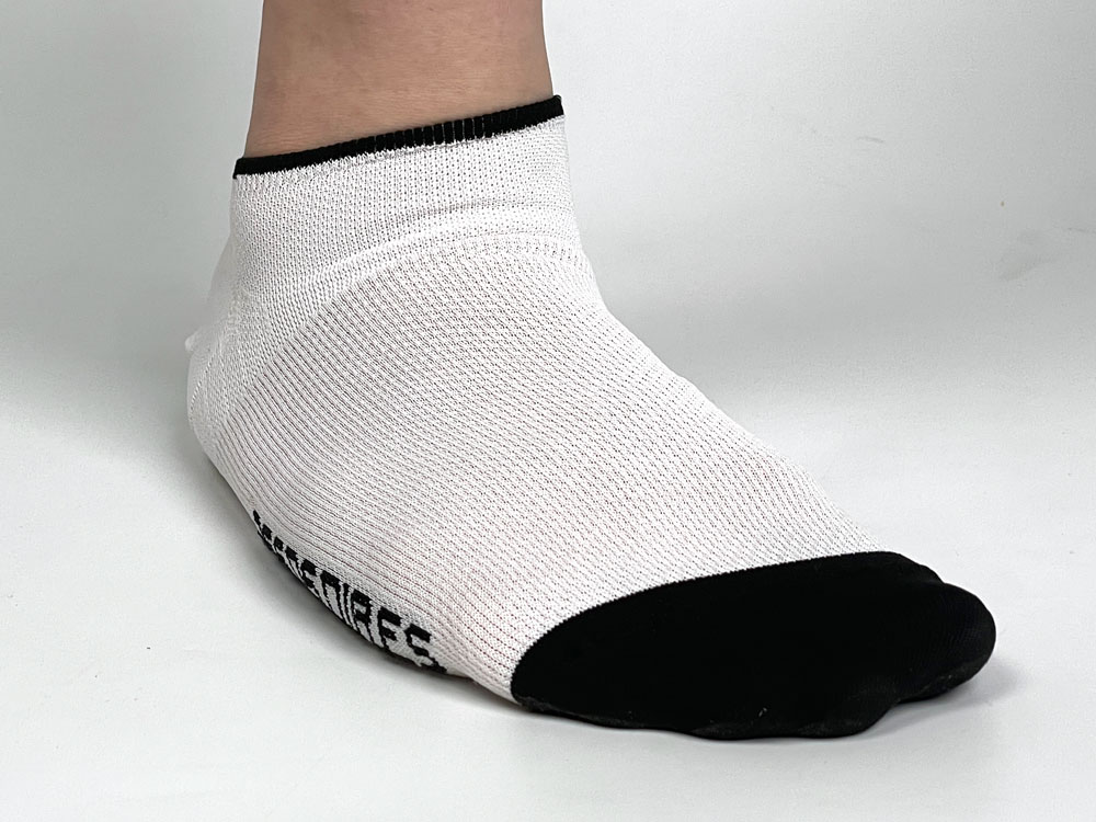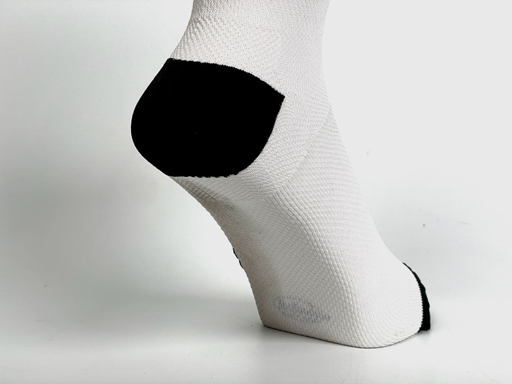 全体はとても薄いですが、かかとや母指球あたりのペダリング時に擦れるポイントには厚みを持たせ、摩擦から足を守ります。