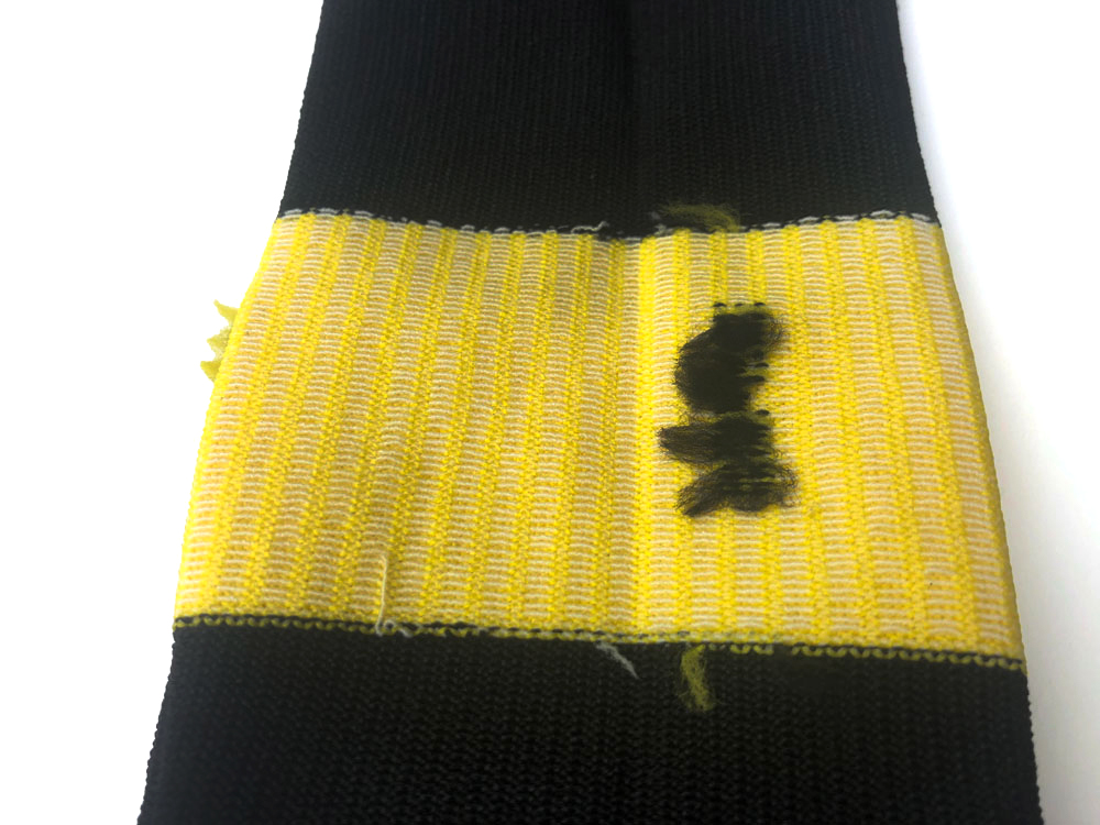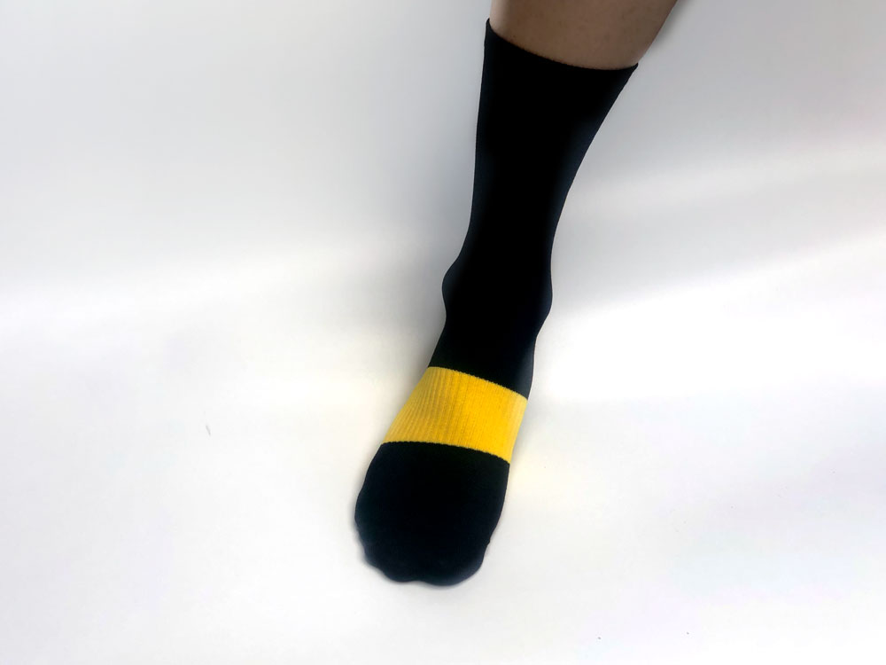 足首の動きを阻害しないようにシワになりにくい構造にして、摩擦にも強くしています。