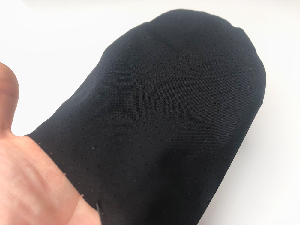 ソフトレインシェルなどにも使用されるこの生地には小さな穴が開いており、ASSOSでトップレベルの透湿性を誇る生地となっています。