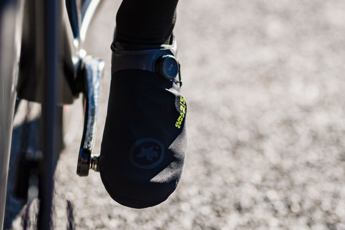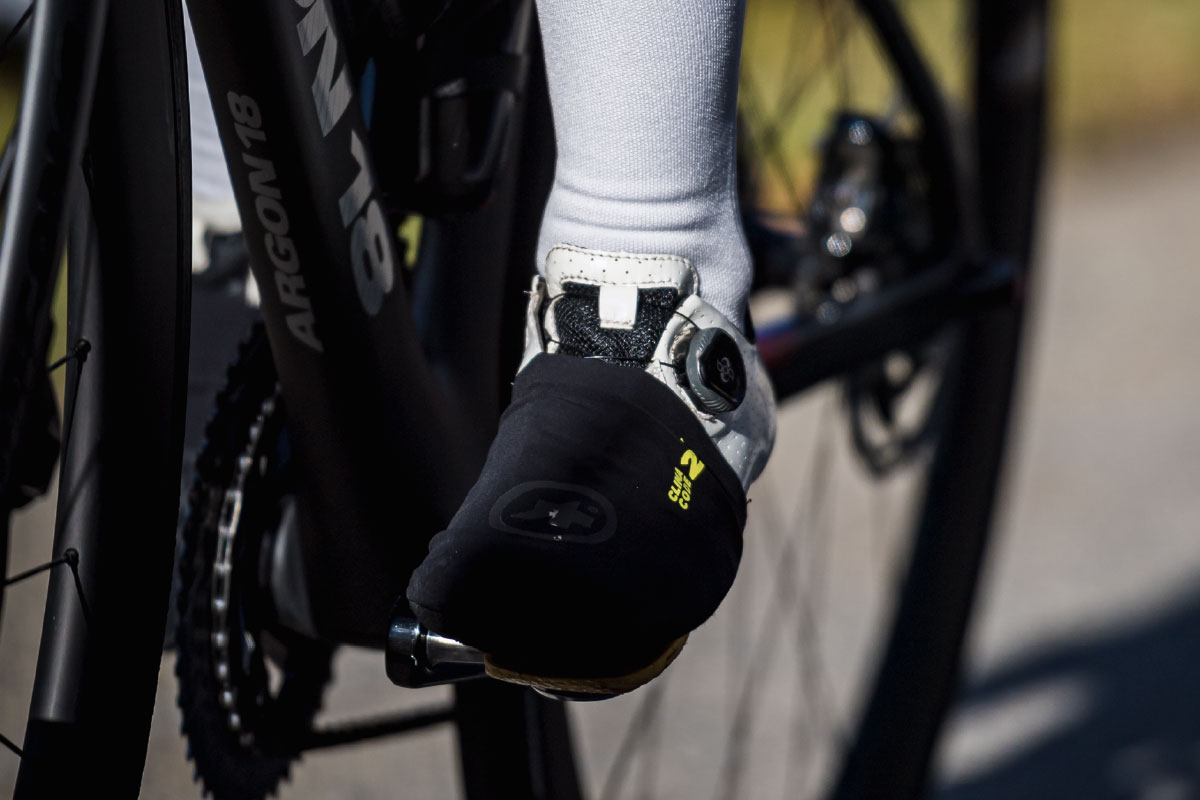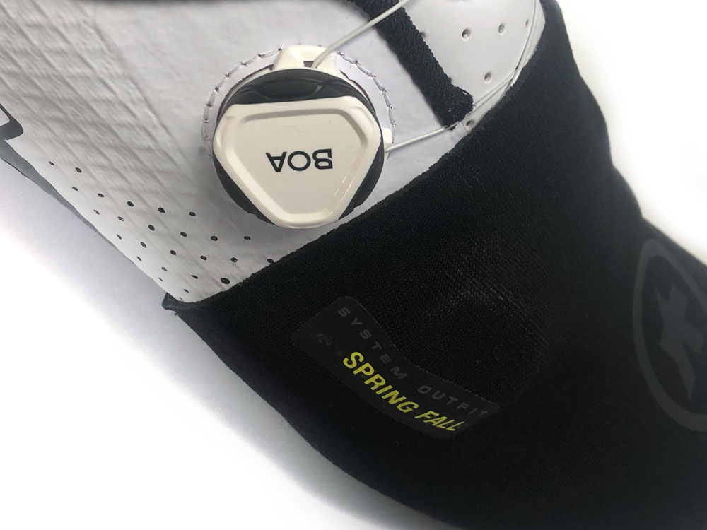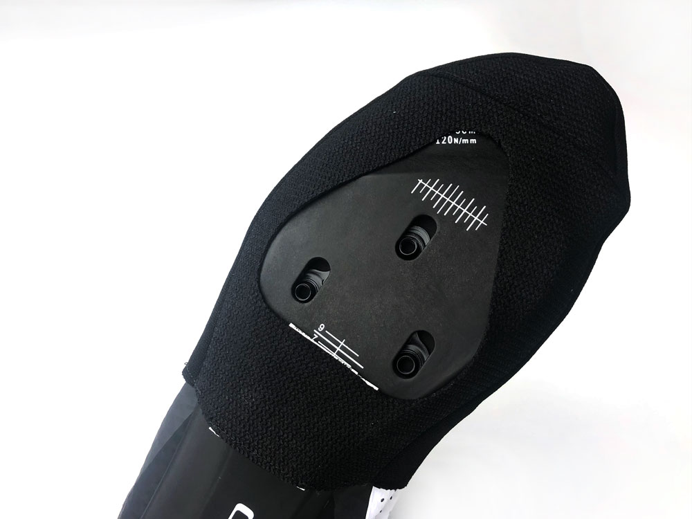 ネオプレーン素材は保温性と防風性をもちストレッチ性がいいのでBOAなどの出っ張りの激しいシューズにもフィット。