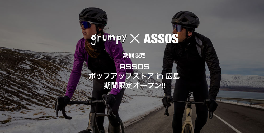 ショップ情報、ASSOS、イベント期間限定 ASSOS ポップアップストア in 広島オープン!! Posted on 2023/11/152025/10/01 by Diatec.ltd 楽しいを追求する自転車ショップ「Gumpy/グランピー」店内に 11月18日(土)より期間限定でスイス プレミアムサイクルウェアASSOS ポップアップストアがオープン!!