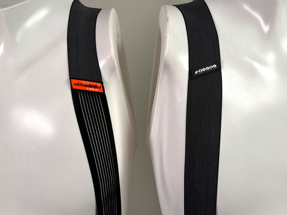 S9では後ろ側と前側の2種類の生地でビブストラップが構成されていましたが、S11では後ろ側と前側に2種類計3種類の生地が使用されています。