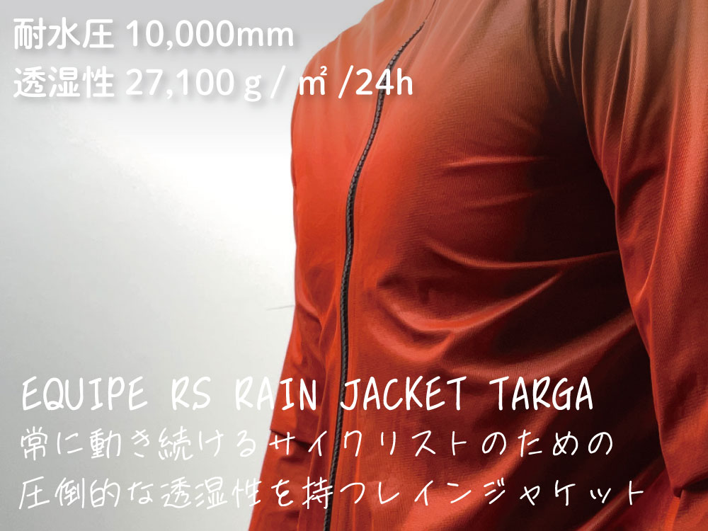 レインジャケット1つめは「EQUIPE RS RAIN JACKET TARGA」です。