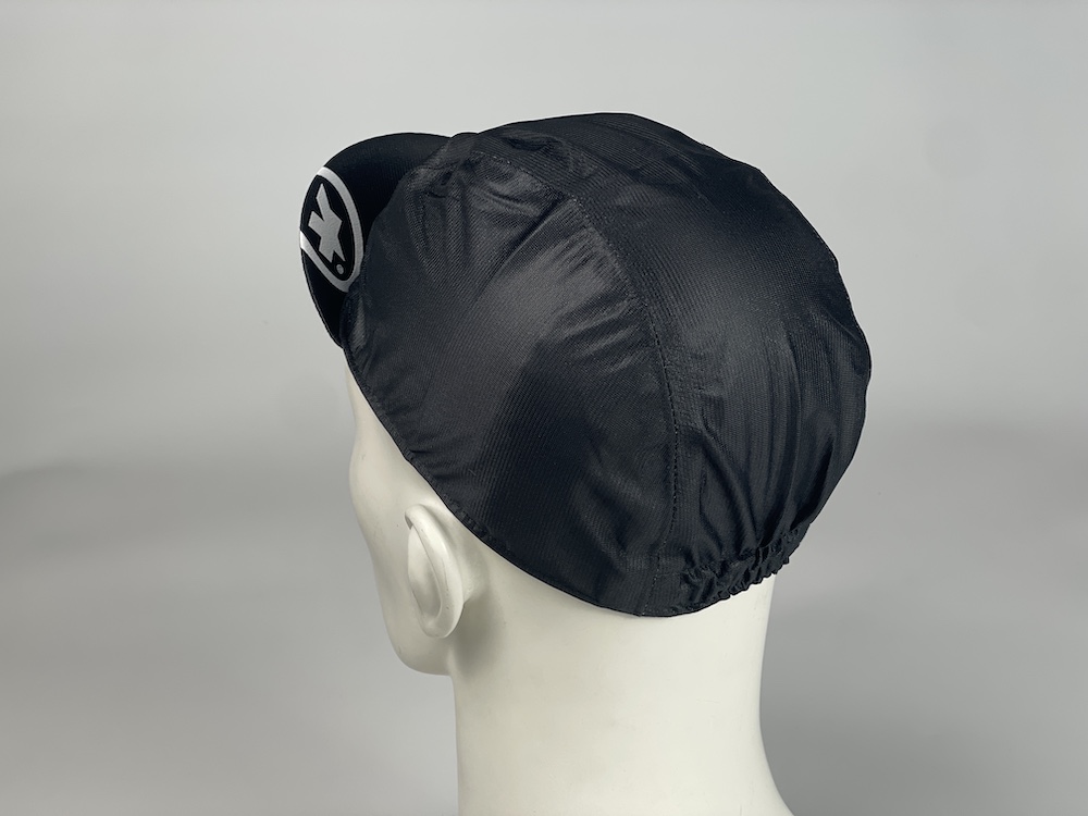 ASSOSのRAIN CAPは、RS RAIN JACKETと同じ、浸透性の高いSchloss(シュロス)テキスタイルを使用。