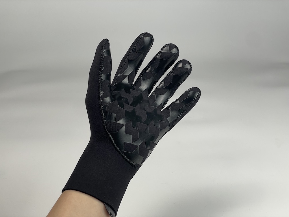 ASSOSのGT RAIN GLOVES はウェットスーツなどで使用されるネオプレーンをベースにした3層のNEO WET (ネオウェット)テキスタイルを使用し、操作を行いやすいパームパネルで作られ着用していても縫い目が気になりません。