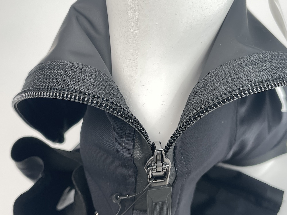 ファスナーは雨の侵入を防げるよう裏向けで設置されています。