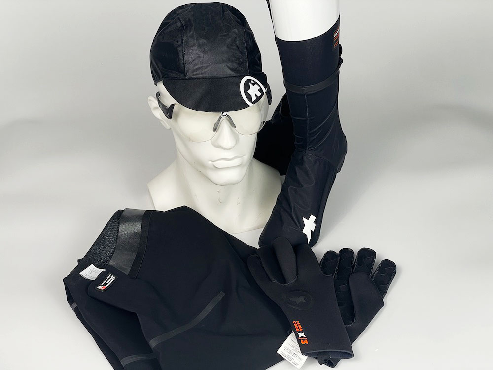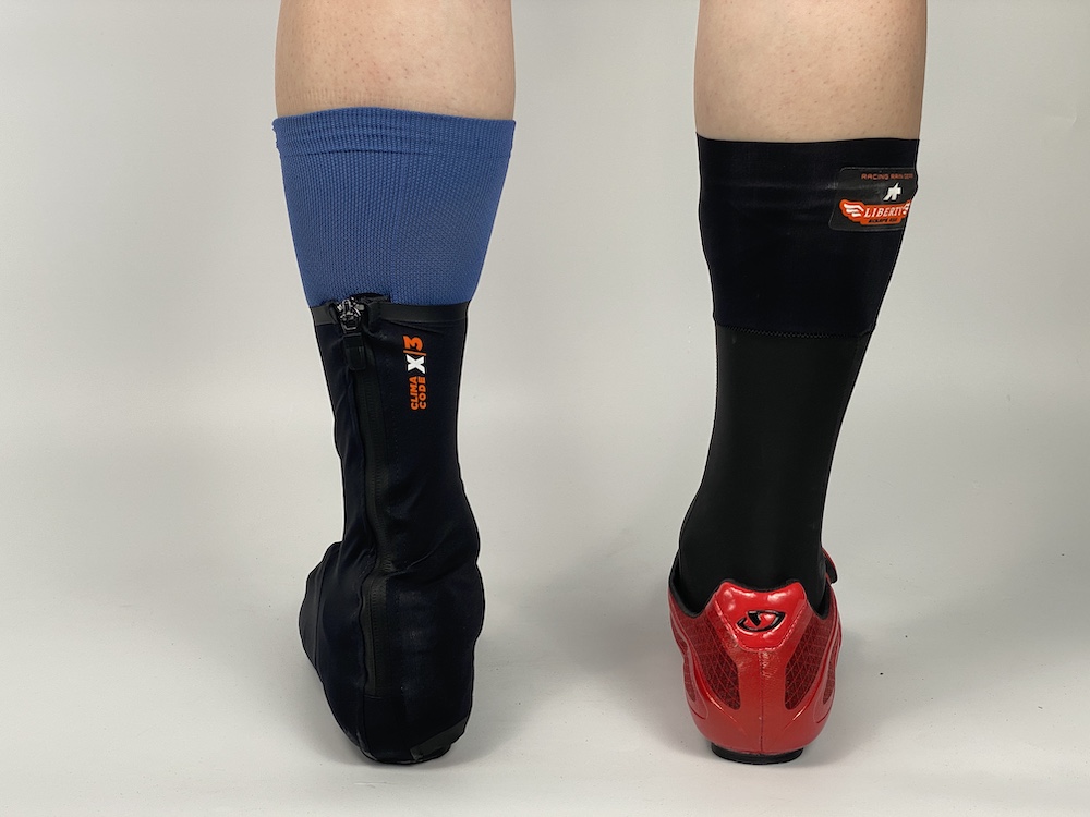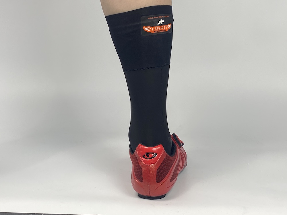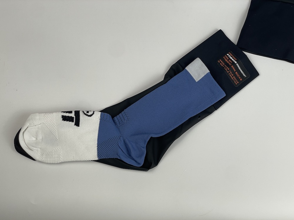 またASSOSには足の濡れを防ぐアイテムがもう1つあり、ソックスとシューズの間に身に着けるRSR THERMO RAIN SOCKS(RSRサーモレインソックス)もあります。
