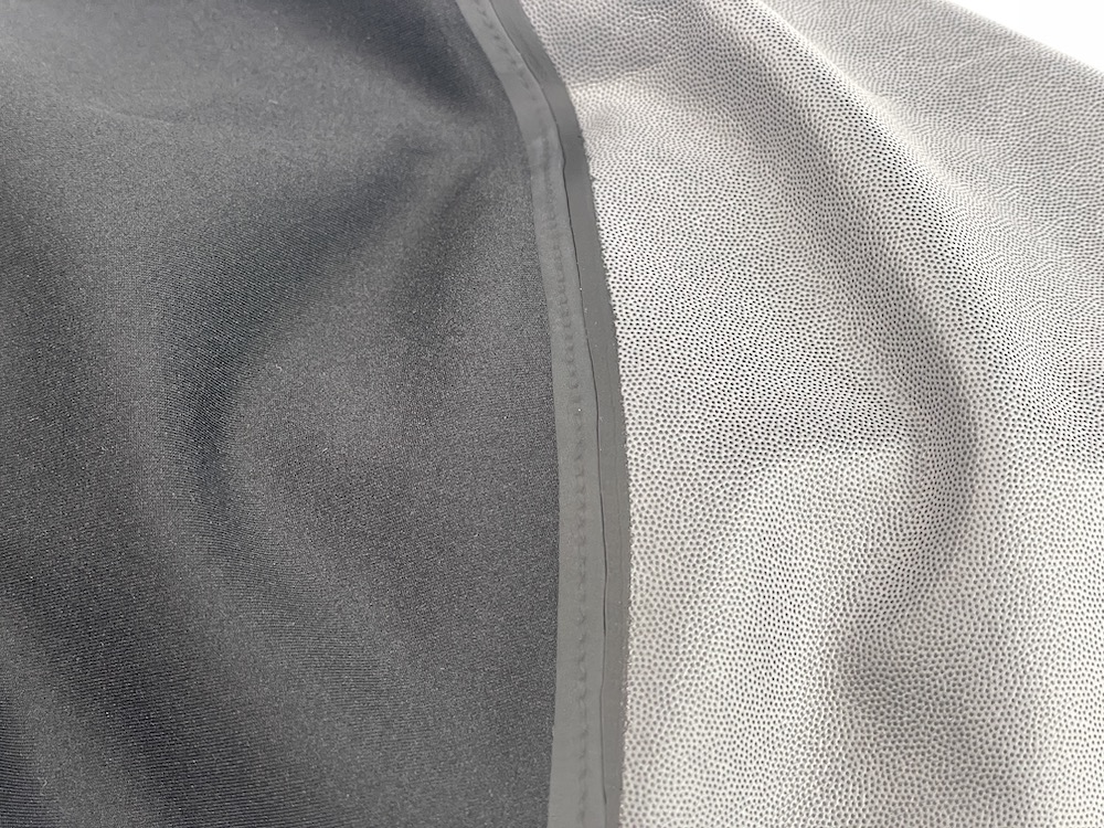 これまでで1番軽量な防水素材で3層構造から出来ており、防水性は高いまま浸透性を向上させています。また、フィット感を高めるために後方への伸縮性も持たせています。