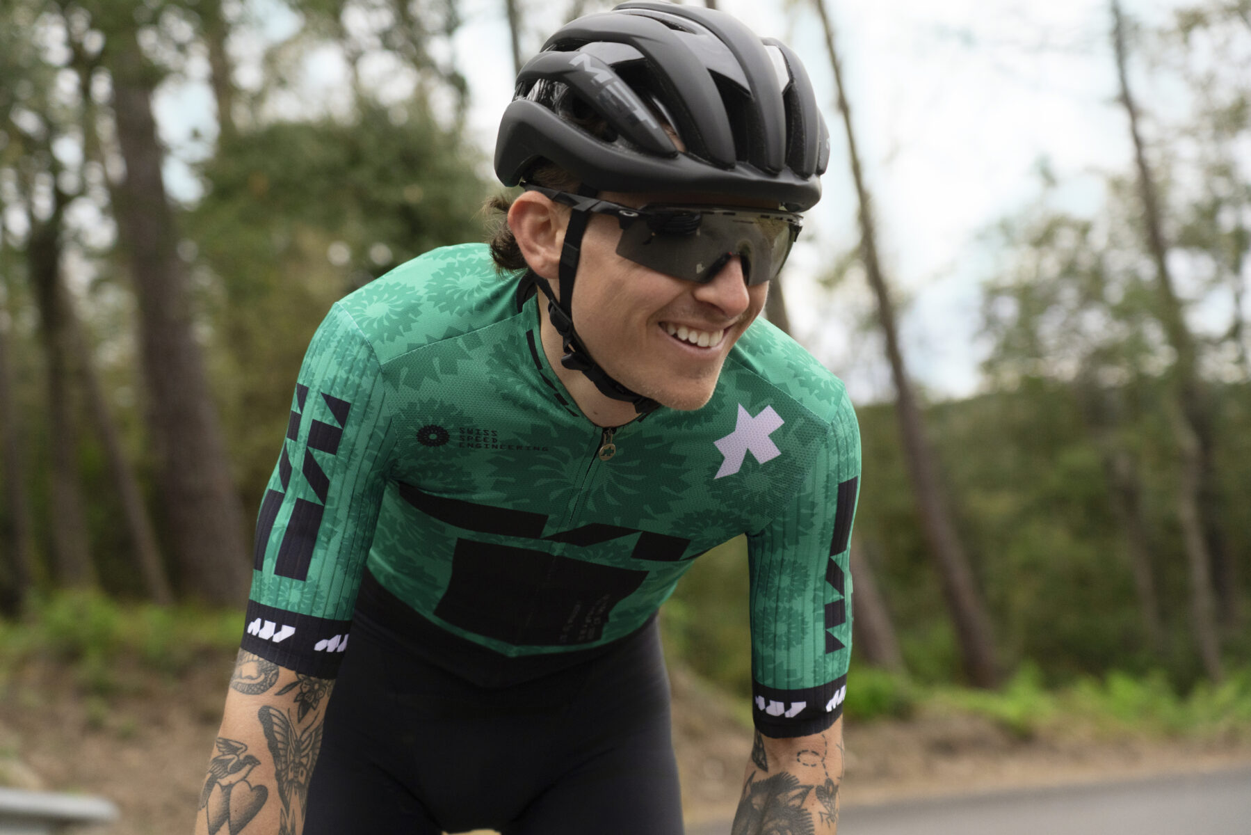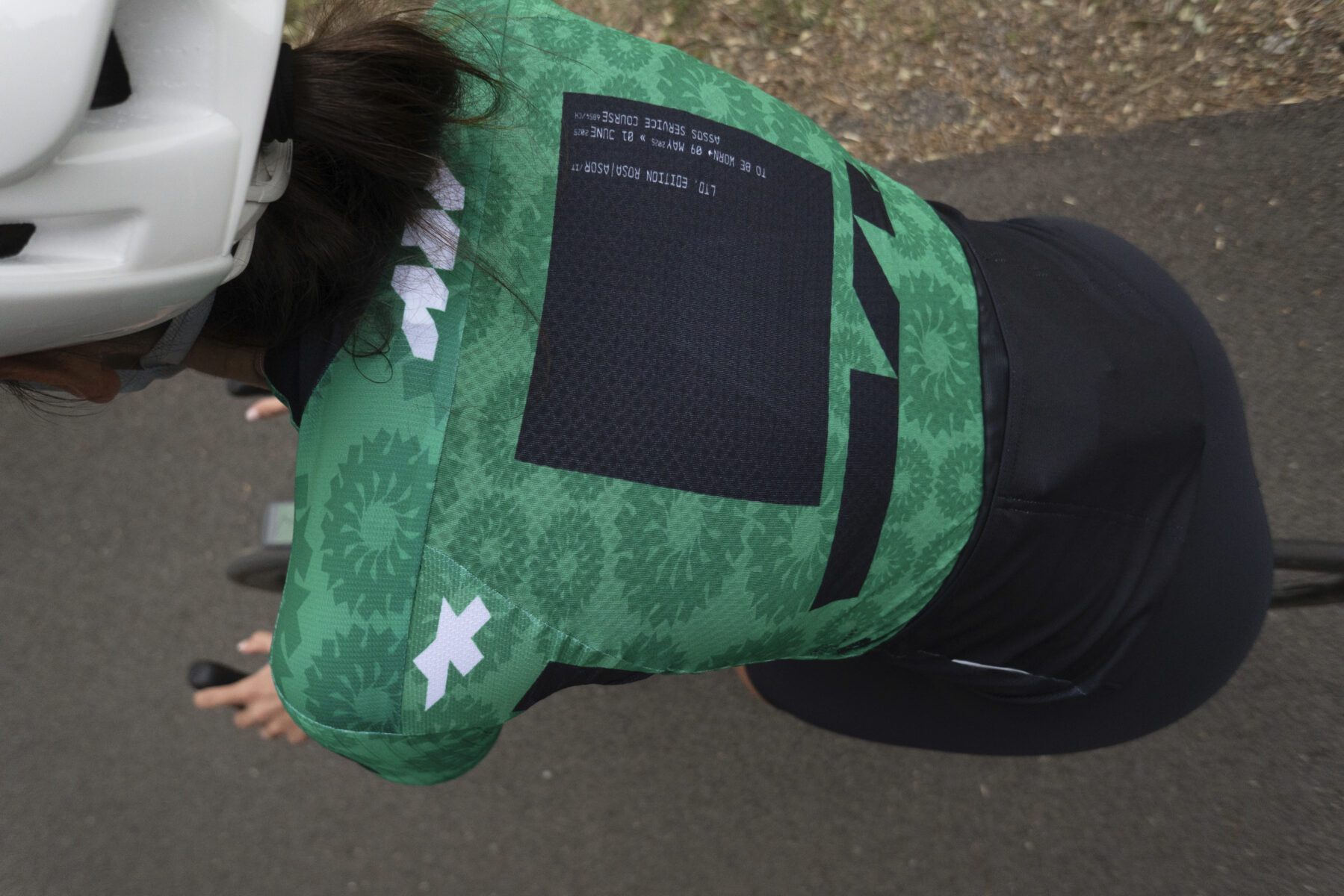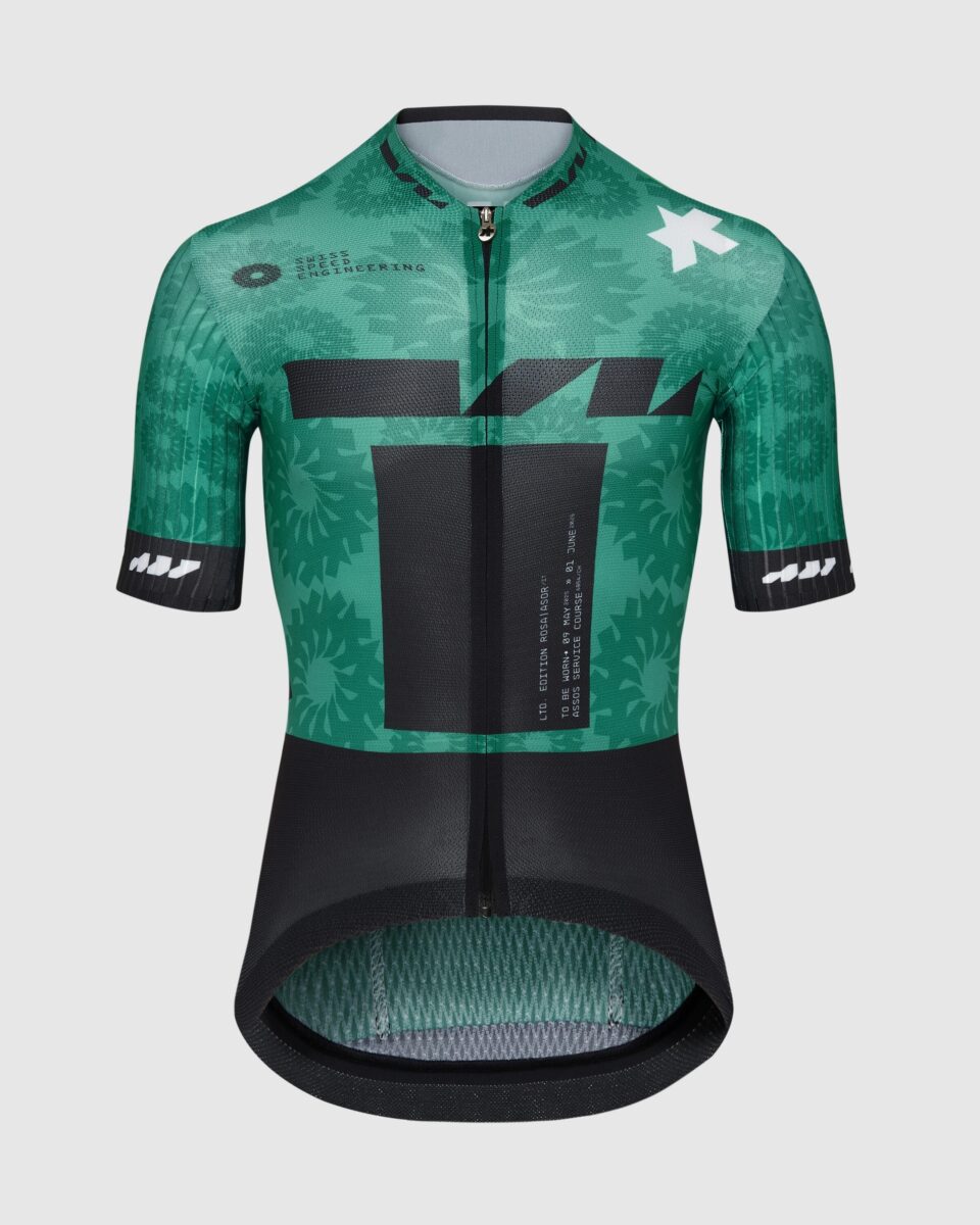 カラーはピンクの反対(補色)であるグリーンに。名前はマリアローザ(MAGLIA ROSA)はASORに変更し、デザインはASSOSのレースの歴史を落とし込まれました。