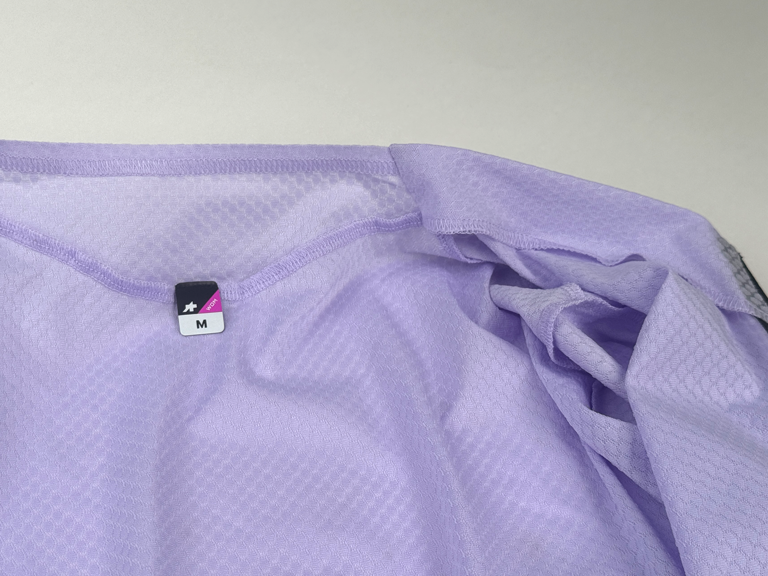 他社のジャージと比較するとASSOSのジャージではかなり細い糸が使用され、緻密で薄く作られています。