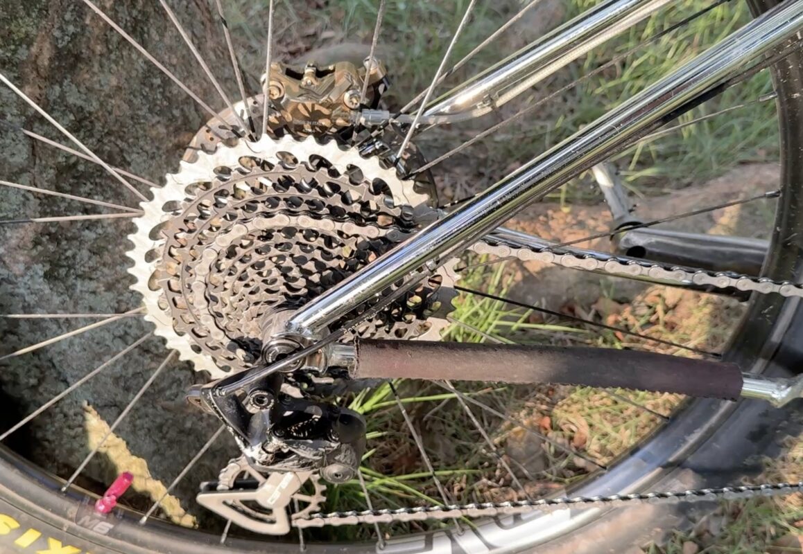 TWO PRONG BRUSHでチェーンステーなどの隙間やハブ周りをブラッシング