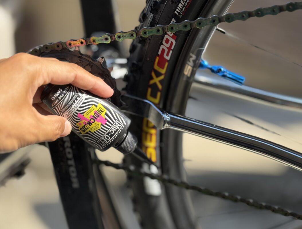 レース当日も天候が良いので世界最速のチェーンルブ Muc-Off / LUDICUROUS AF を塗る。これがペダリングもシフトチェンジもとてもスムーズで軽くなってココ一番ではこれ一択。今回も助けてもらおう。