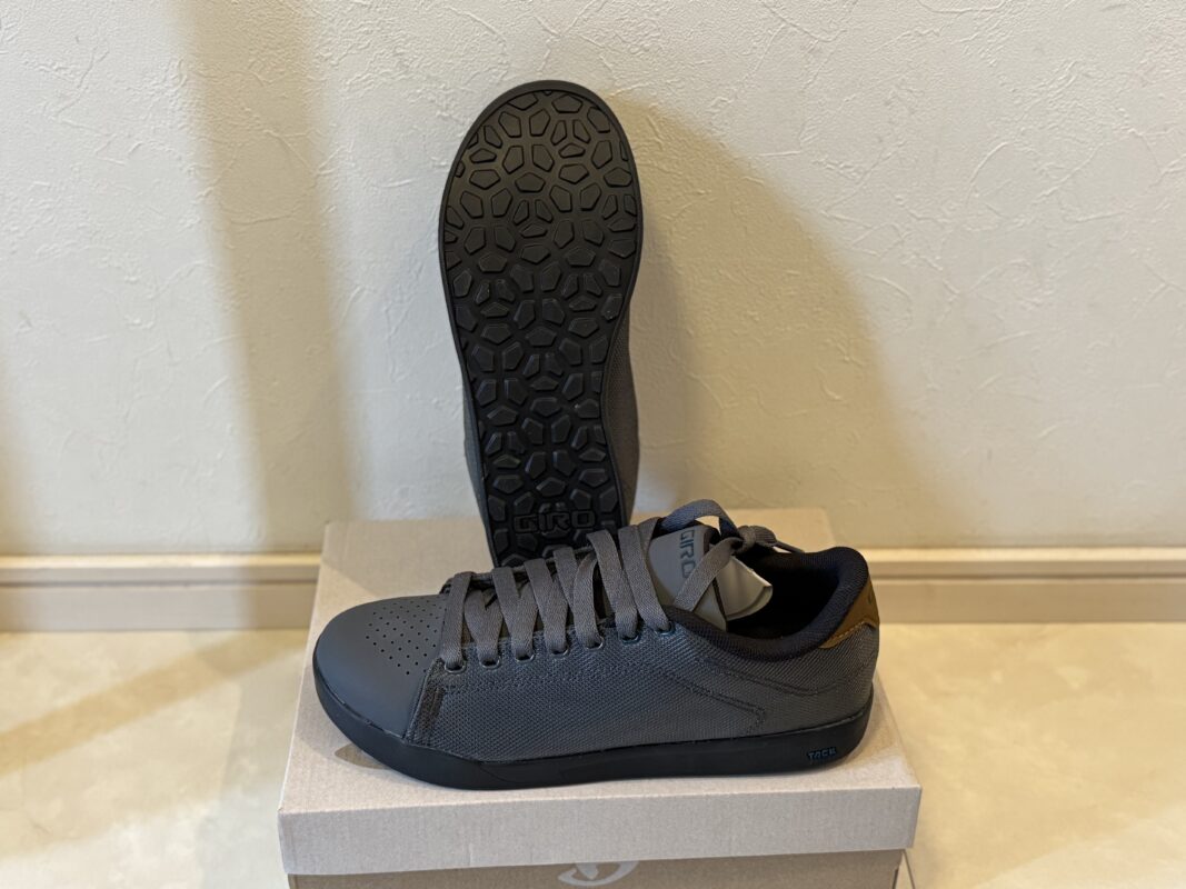 GIROが本気でフラットペダル用に開発したDEEDはソールの質感がとても良く、ペダルのピンをムギュッと受け止めてくれるので安定感が最高。