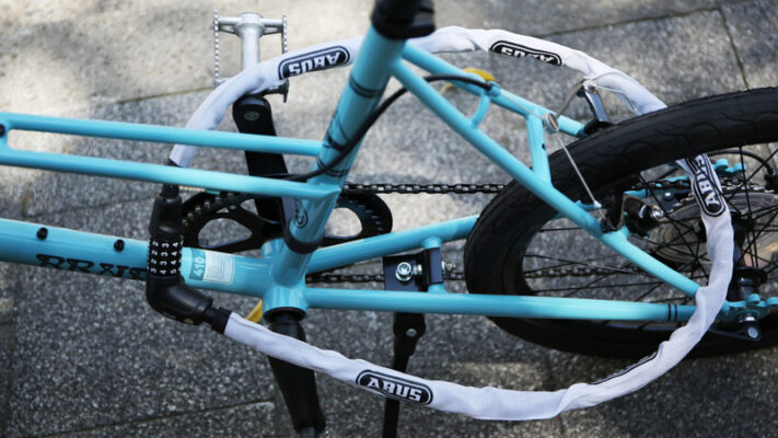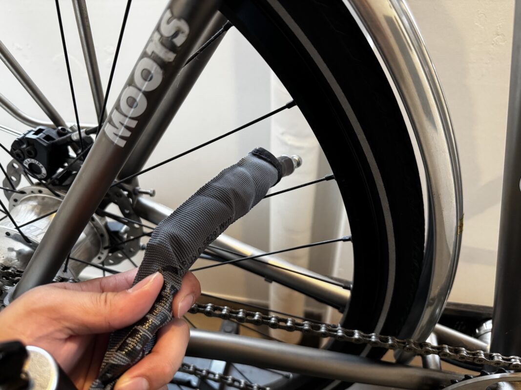 チェーンロックでは、ホイールの間通そうとしてフレームなどに当ててしまうことも。