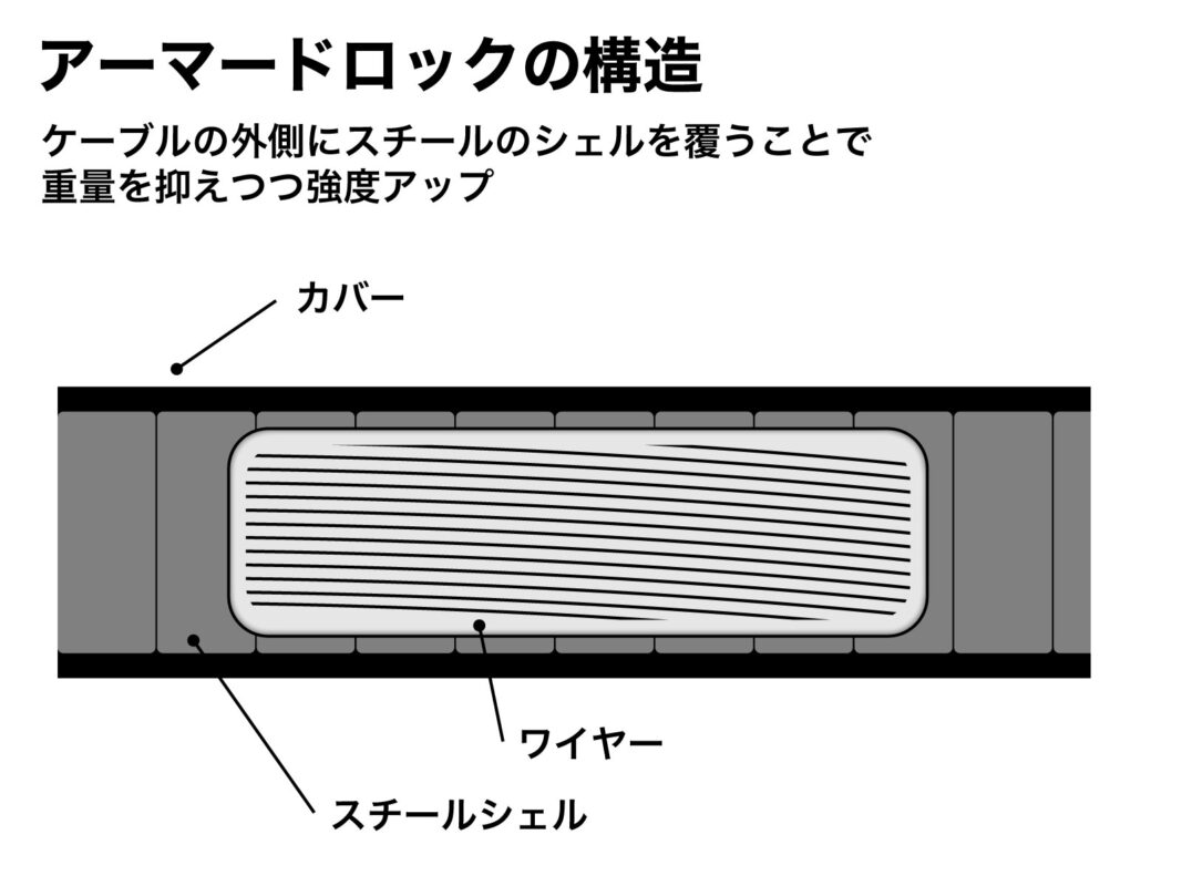 同じようにケーブルの上からスチールのシェルが覆われているロックもありますが何が違うのでしょうか?