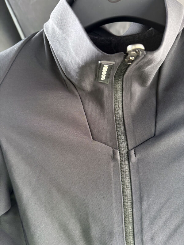 このジャージは EQUIPE R システムの基幹アイテム で、肌寒い日の単体使用はもちろん、雨天時にはレインシェルの下に重ねて着用するのに最適です。