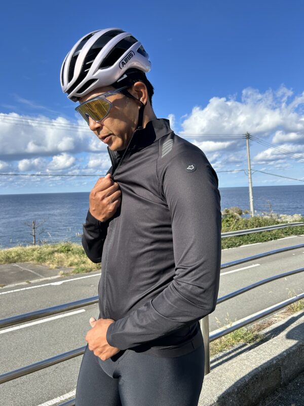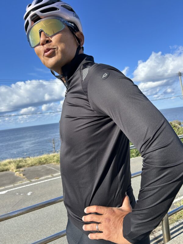 - 優れた温度調整性能 この日は峠をTT(タイムトライアル)で走りましたが、走り始めとTT後の下りで冷える前に着用することで、うまく体温をコントロールできました。 汗をかいた後に着ても蒸れる感覚がなく、余分な熱をしっかり逃がしながらも体は冷えず、快適な温度を保ってくれたのには驚きました。