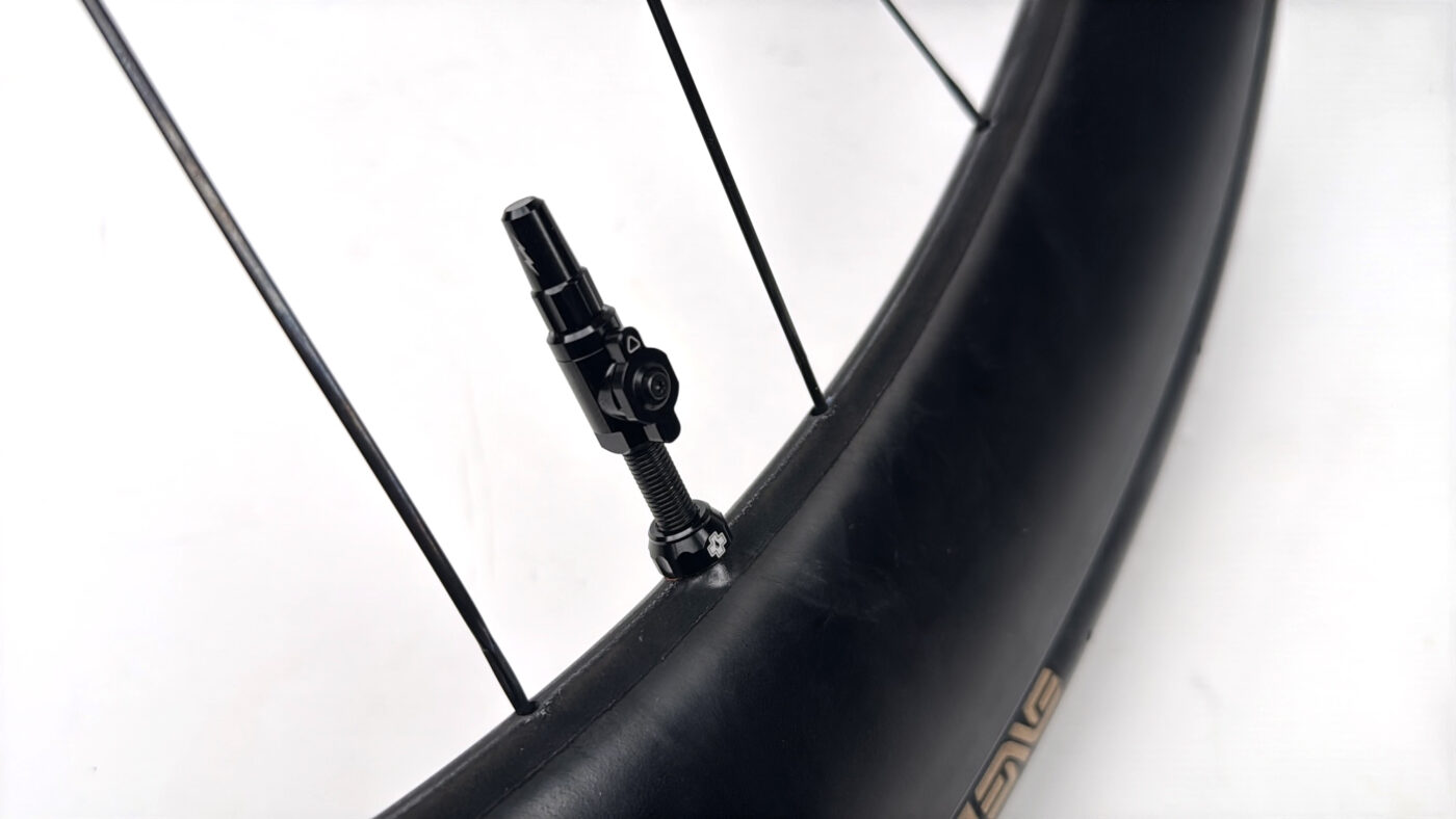 空気やシーラントの通り道を大幅に拡大したチューブレスバルブです。