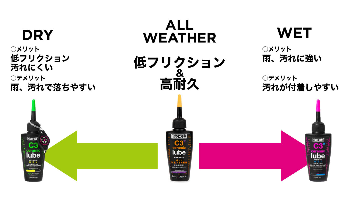 従来の「ドライ」や「ウェット」という選択に縛られることなく、どんな天候・路面条件でも安定した潤滑性能を発揮するよう設計されたのがC3 All Weather Ceramic Lube。
