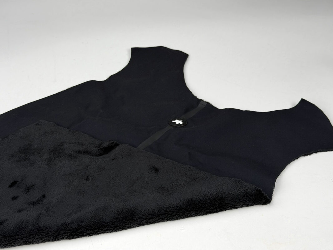 さらに前面と背面で縫い方を変えているため風の当たる前面は暖かく、背面はウェアと密着していても蒸れにくい凹凸のある生地になっています。