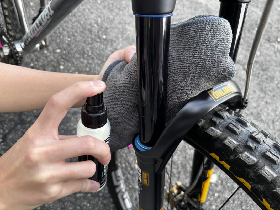 この汚れが、動きの抵抗を生んだり、ゴムシールやインナーチューブの劣化につながります。
