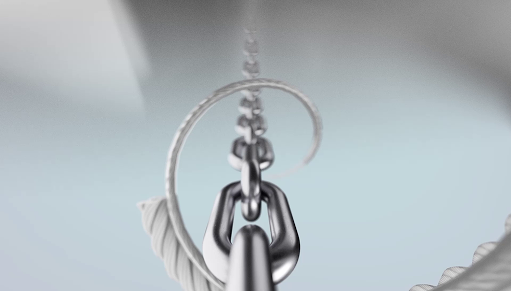 チェーンをスチールケーブルでぐるぐると巻いて、さらに、その周りを編み込んだ布で覆って行く構造。