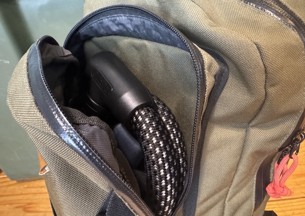 芯にチェーン、間にスチールケーブル、そして外側に厚手の布がくることでグニャッと潰れて切断がしにくい構造になっています。