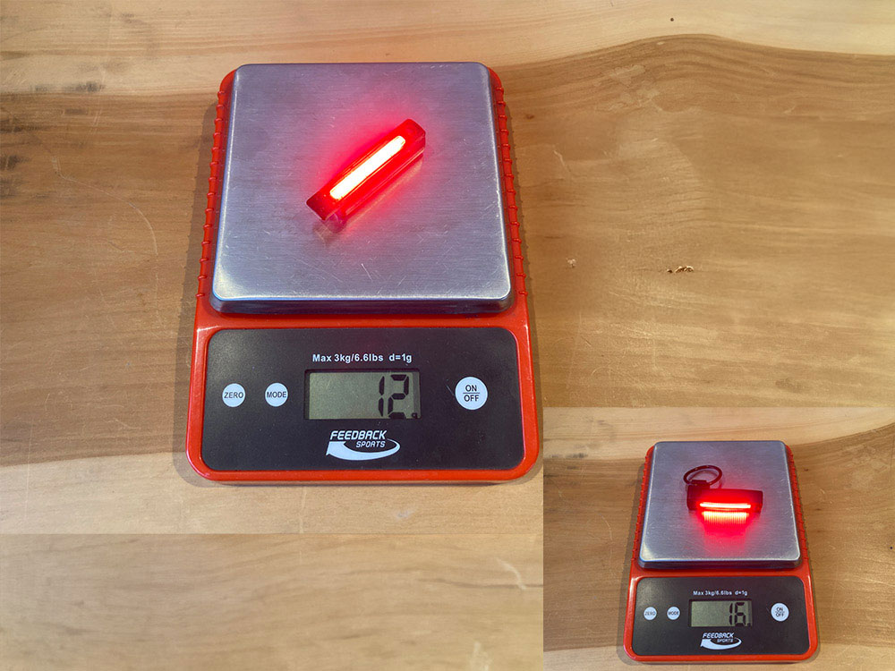 10個つけても120g。フロントライト1個よりも軽いリアライトです。