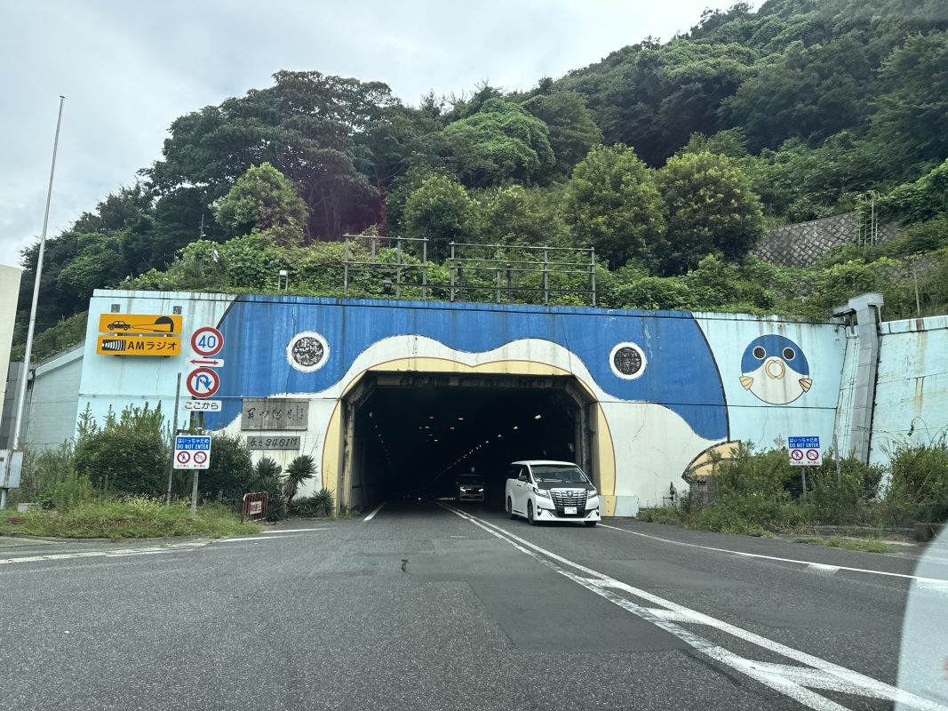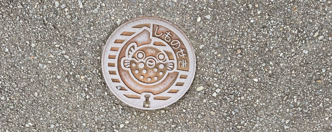 まずは北九州市から海底トンネルで下関市へ。フグのイラストが可愛い。
