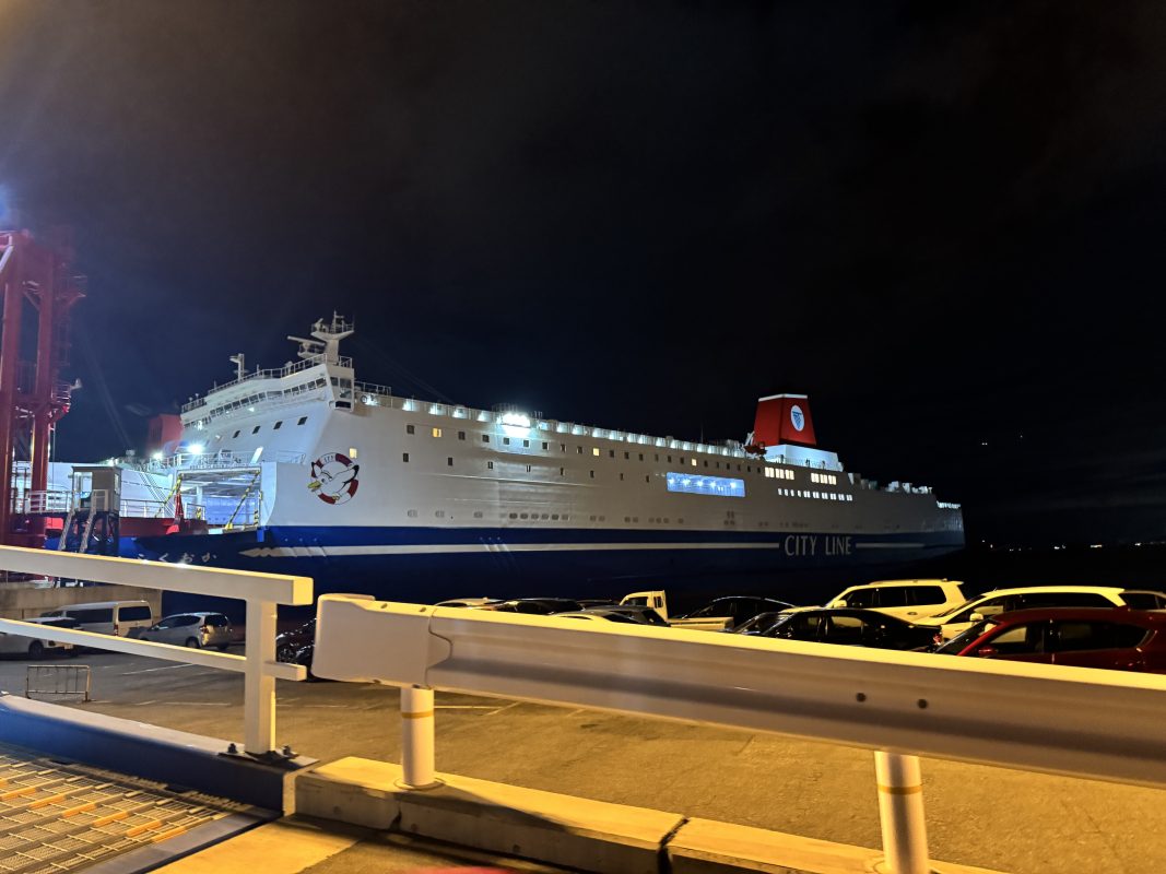 今回はルーキーYと2人で大阪の南港から北九州の新門司港までフェリー。南港でフェリーに乗るまでに4つくらいトラブルが発生してバタバタしたのはナイショ。