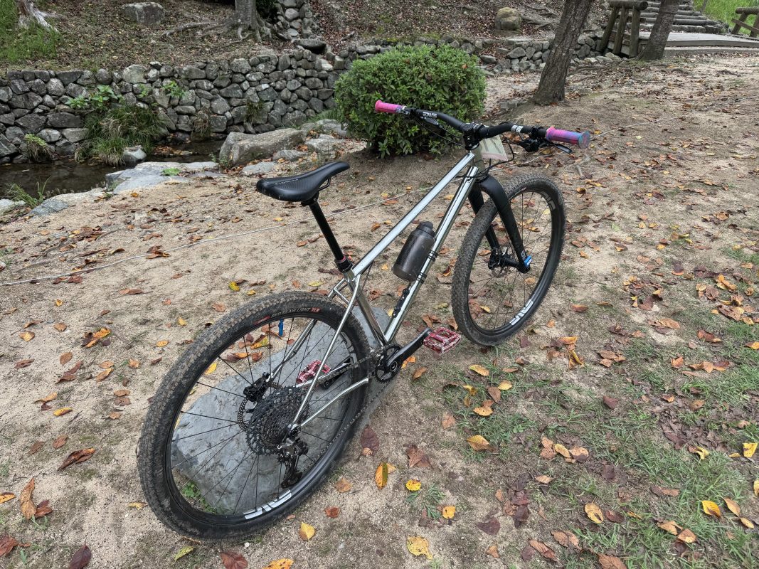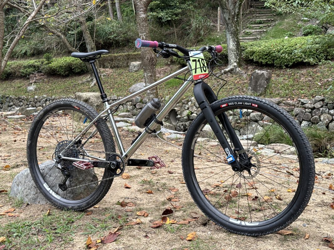 「カッコイイですね!なぜフルリジットなの?なぜフラットペダルなの?」毎回頂く質問ですが「謎のチームオーダーなんです」としか言いようがない(笑)
