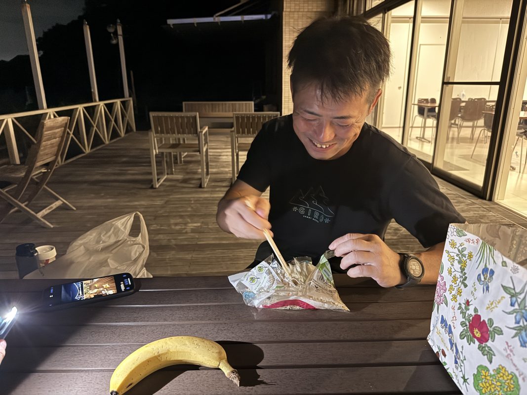 美しい夜景を眺めながら夜食にサラダを食べるマスダ。いつからそんなキャラになったんや?腹いっぱいでも追加でこってりラーメンを食べてたマスダはどこに行ったんや⁉︎(笑)
