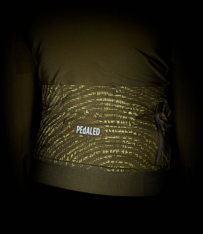 驚異の7ポケット: PEdALEDの代名詞とも言える大容量収納。背面だけでなくサイドにも配置されたポケットは、長距離ライドでの補給食や小物の出し入れをスムーズにします。