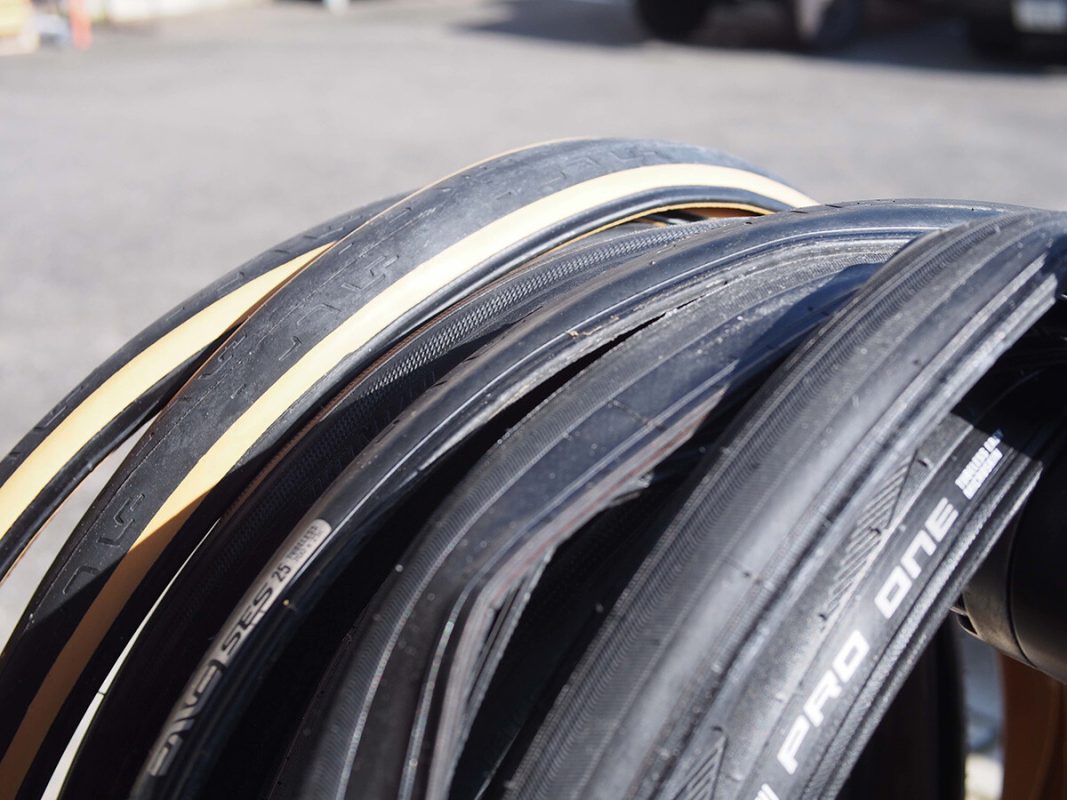 そこでENVE フックレスリムを使用して、実際に対応するタイヤを集めて着脱テストを行いました。