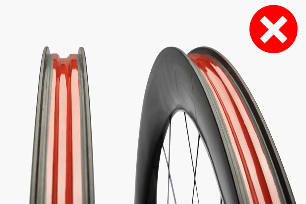理由4)ニップルホールはリムに密着するように加工されているため、リム内部に空気が溜まってしまいます。