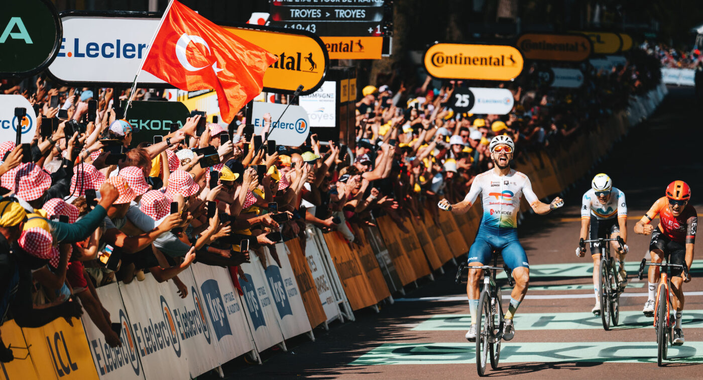 ツール・ド・フランス2024第9ステージ。未舗装路区間を含む199kmのコース。逃げ集団に入ったENVE MELEE(メレ)フレームをはじめ、ホイール・コンポーネントを使用するトタル エネルジーチームのアントニー・テュルジス選手が、ゴールスプリントを制しENVE MELEEに初のプロツアー勝利をもたらしました!!