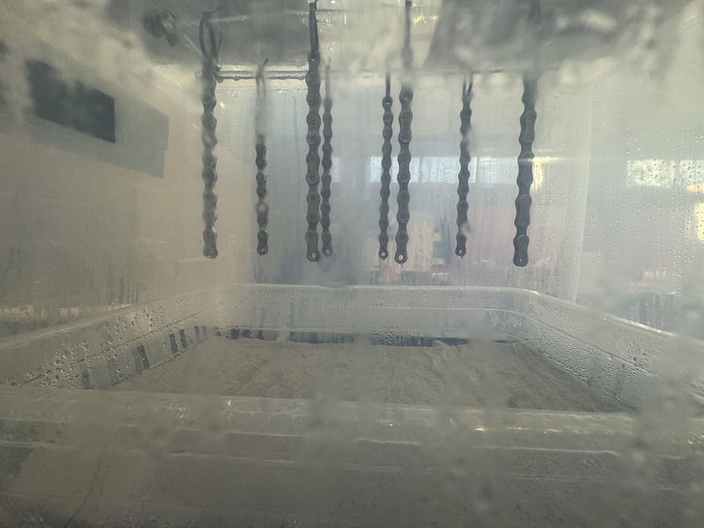 秘密も多く、たくさんの写真は撮れなかったのですが、ちょうど新製品の防錆テスト(塩水噴霧試験)の真っ最中でした。楽しみです。