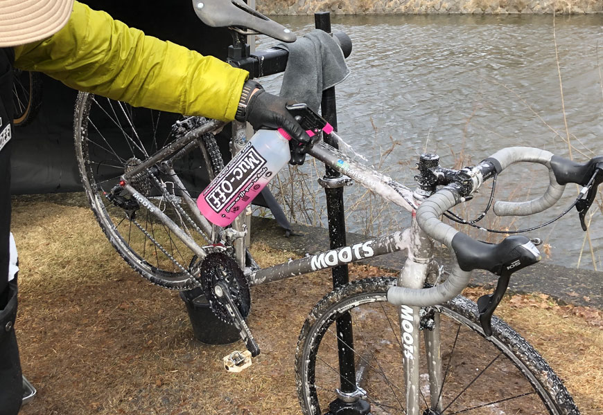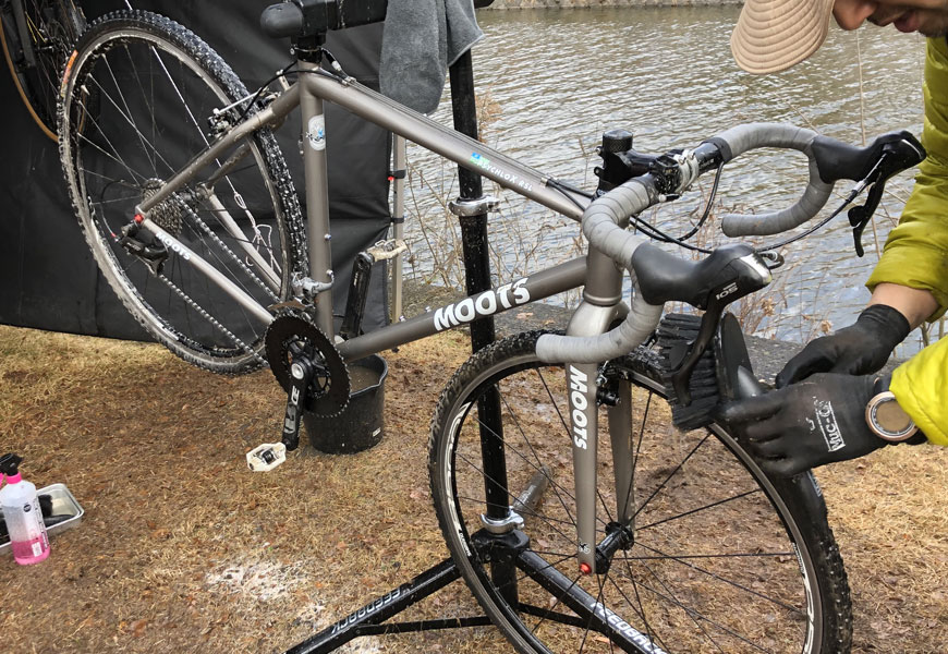 - 泥が落ちにくい、サドル裏→タイヤ→BB周り、フォーク周り→フレームの順にふいて、