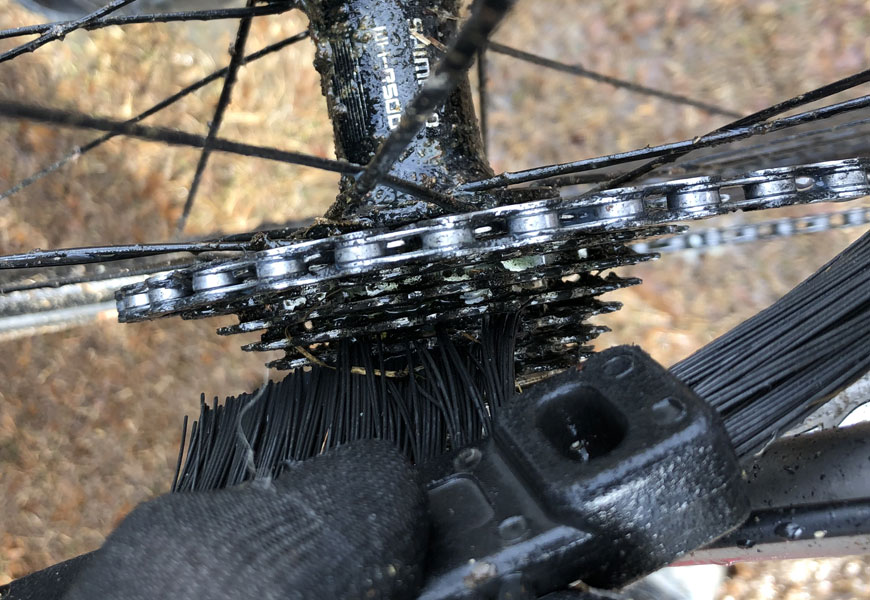 ドライブトレインクリーナーをスプロケ周りでゴシゴシ