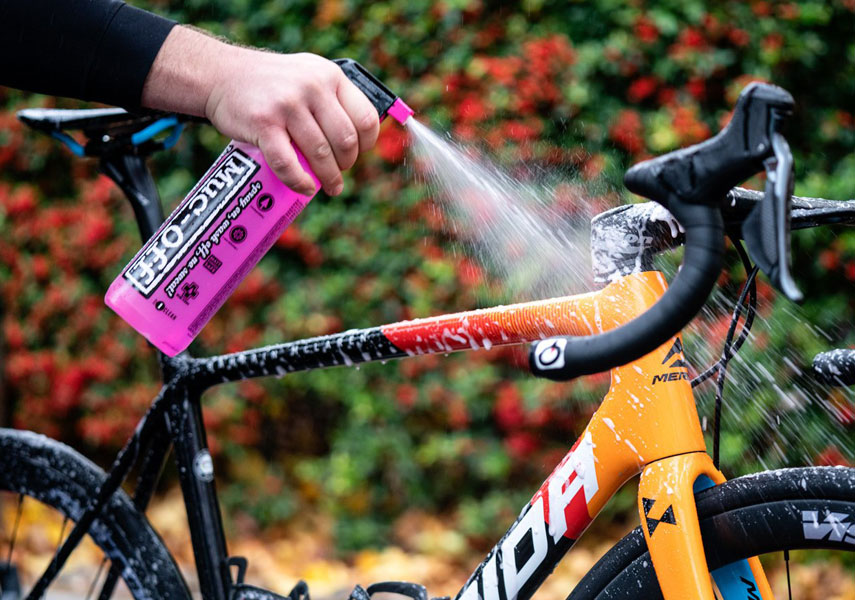 毎日150km以上のライディングをカバーした後、バイクはかなりの汚れや汚れで覆われてしまうと言っても過言ではありません。ナノテックバイククリーナーは、毎日のステージ後にメカニックによって使用され、バイクの汚れを簡単にしっかり落とします。重量、スペース、プラスチックを削減するために、チームはバイククリーナーコンセントレートを使用しています。