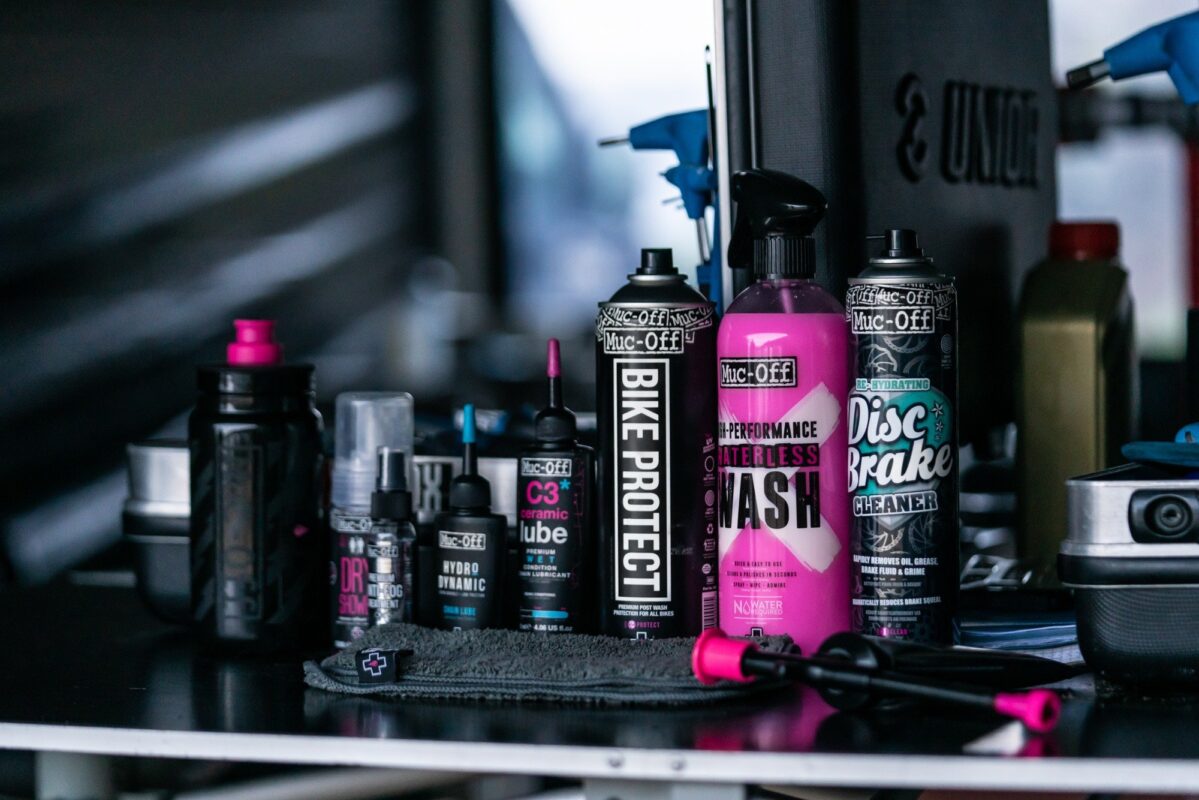 洗車用品(クリーン)から、保護グッズ(プロテクト)、そして潤滑剤(ルブ)をはじめ、チューブレスバルブなどMuc-offの製品がチームをサポートします。