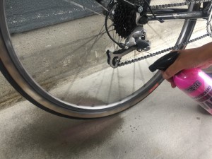 チェーン付近の油汚れには効かないですが、どこについてもいいので、とにかくシュッシュッと。