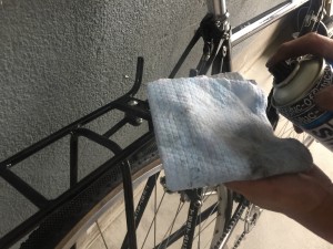 ※ブレーキ面につかないように、付きそうなところを布や、紙に吹きかけてから拭きましょう。
