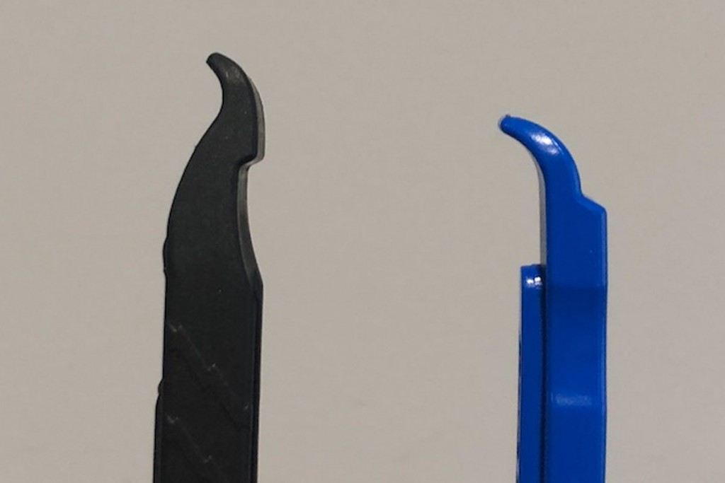 一般的なレバーのツメは、最初にリムに引っ掛ける方向(リムの外側)についており、