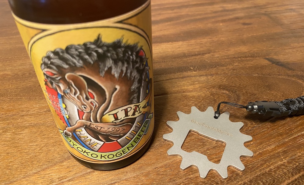 アダムさんが帰ってきたライダーたち一人ひとりに声をかけ、ねぎらいの言葉と、参加賞の栓抜き付きメダルを首にかけてくれる。