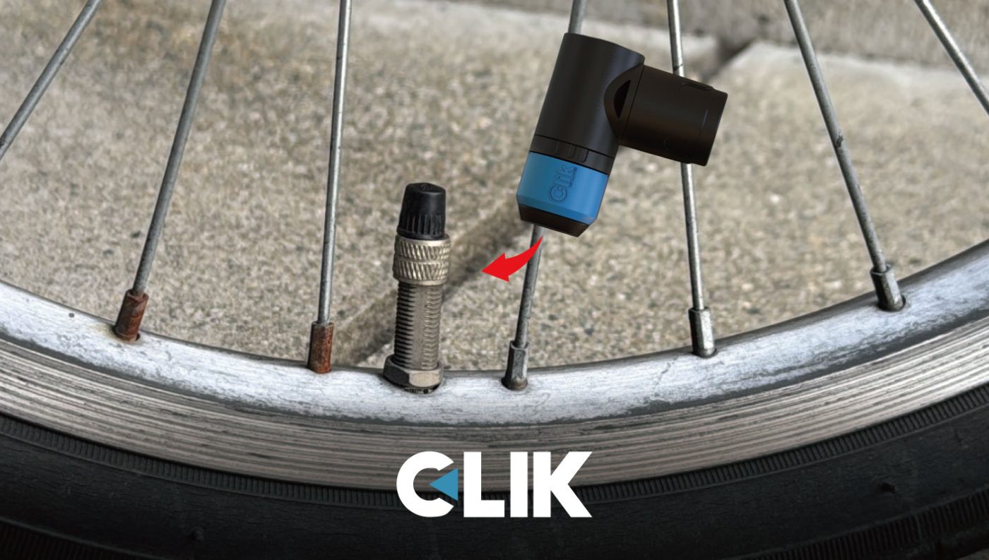 ロードバイクだけでなく、BMX、ママチャリ、車椅子など、すべてのバルブがクリック式になり、瞬時に着脱できるようになります。