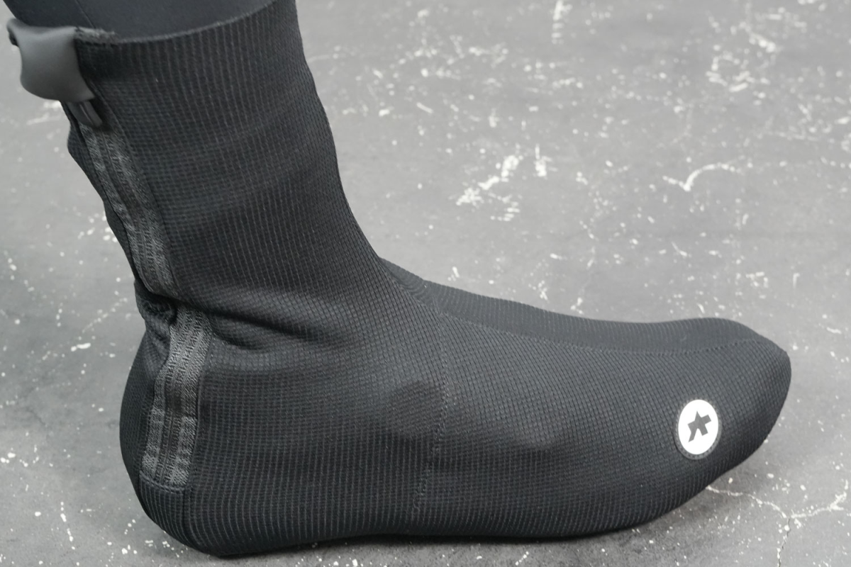 冬のライドで足元を守るASSOSのウィンターブーティー、ウルトラズウィンターブーティーは、防寒性だけでなく、走行中の抵抗を抑えるために非常にタイトなフィットで設計されています。